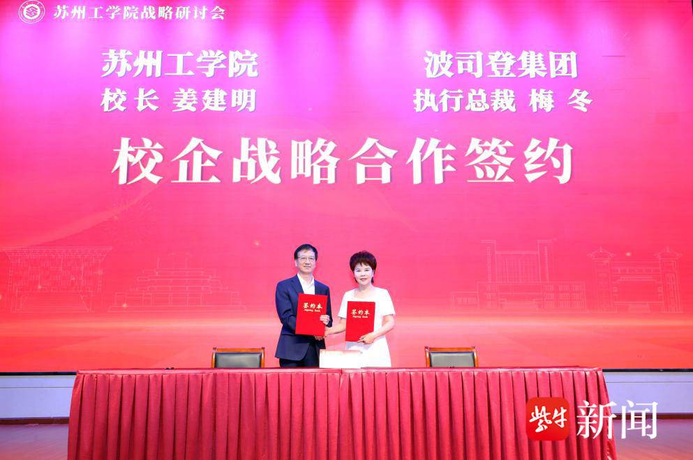 会上,中国人民大学校长林尚立、澳门城市大学校长刘骏、学校理事单位、芬欧汇川特种纸纸业执行副总裁MikaKekki、美国威斯康星大学欧克莱尔分校校长施密特等国内外合作伙伴和各界代表为苏州工学院校名启用和本次研讨会顺利召开送上视频祝福。苏州工学院与波司登集团签订校企战略合作协议。